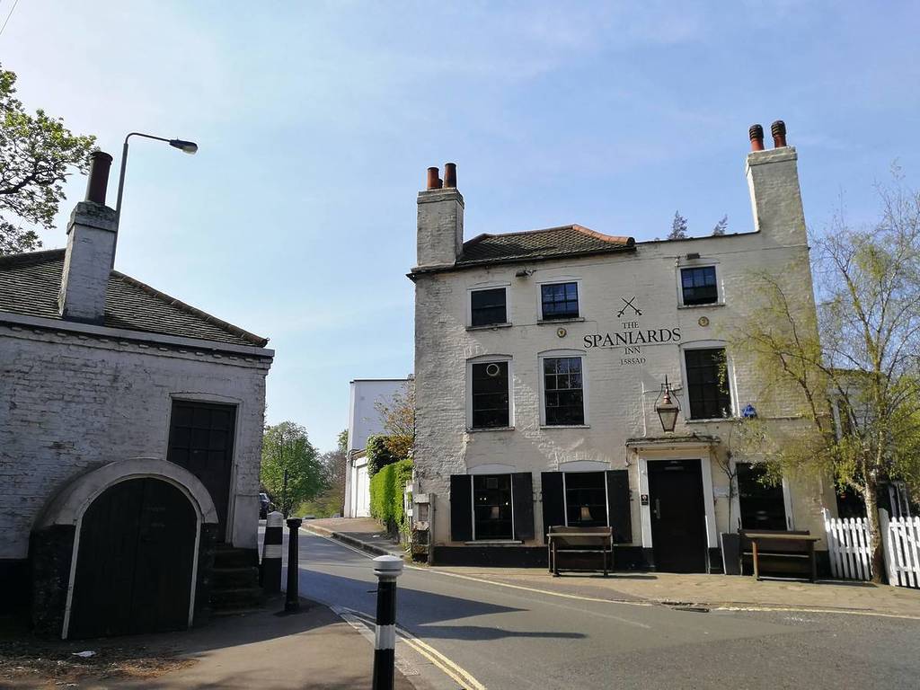 Das The Spaniards Inn, das sich 1585 (oder ungefähr) auf einer Anhöhe in Hampstead niedergelassen hat, war anfangs eine Zollstation an der Grenze zu Finchley. Es gibt zwei Erklärungen dafür, wie das Gasthaus zu seinem Namen gekommen ist. Die erste besagt, dass er ursprünglich zwei spanischen Männern gehörte, die sich bei einem Duell gegenseitig töteten. Die zweite besagt, dass es nach dem damaligen spanischen Botschafter benannt wurde.